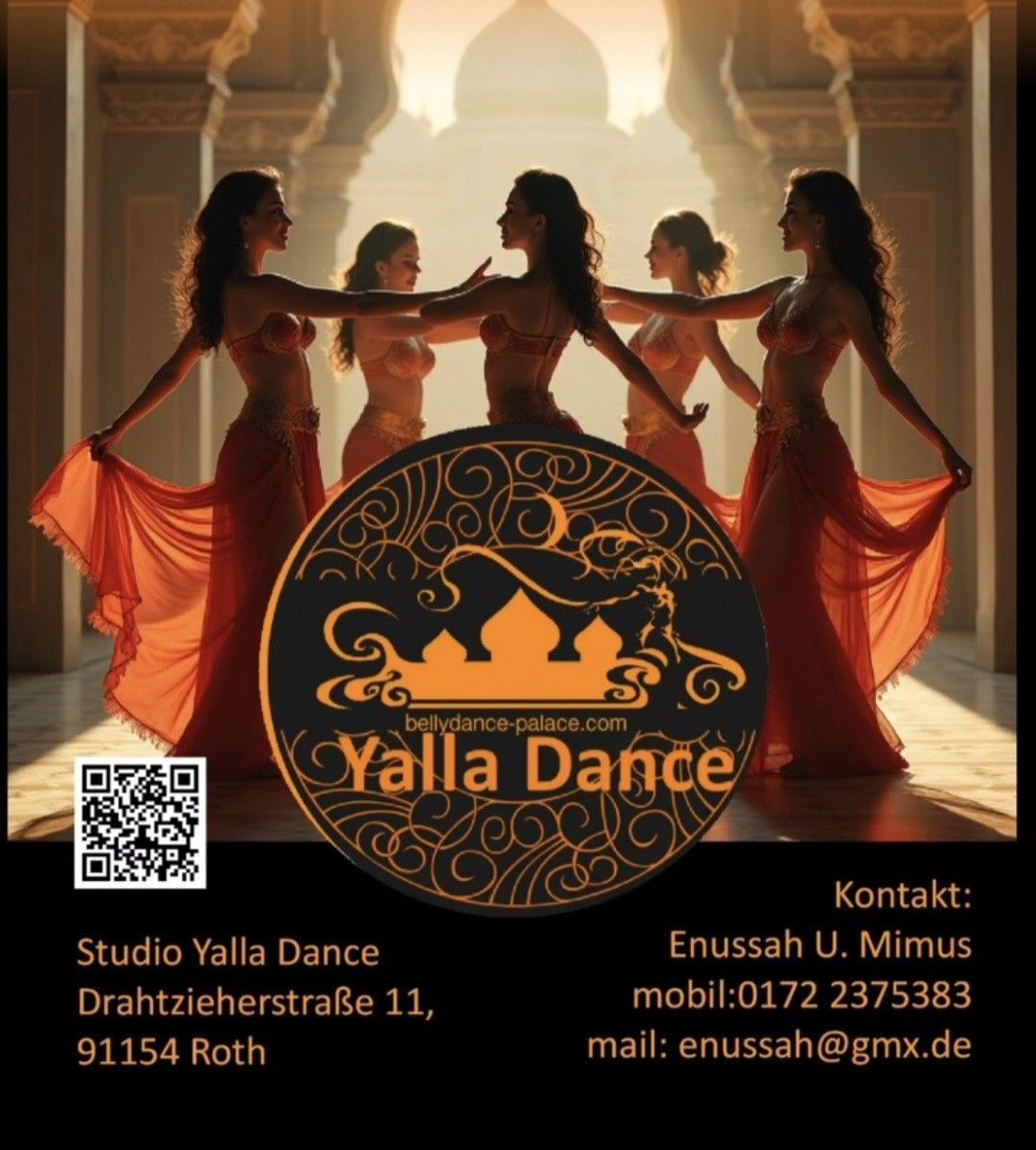 Das qualifizierte und sympathische Lehrerteam , unterrichtet mit Know How, Geduld und viel Empathie in zwei Unterrichtssälen im wunderschönen Ambiente des Studios Yalla- Dance.